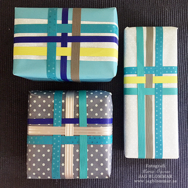 Det blev en trevlig helg med två kalas. Först firade vi en som fyllde 50 år och sedan firade vi min förstfödda som fyllde 20. Känns både som att hon föddes nyss, som för en evighet sedan. Nu har hon flaxat ut i livet precis som fågeln hon ritat, som hänger på väggen här. Jag gjorde fina paket till henne som syns på fotografiet längre ner. Det är så kul att slå in fina paket. Har funderat på om jag skulle kunna starta en paketinslagnings-tjänst på något vis, men svårt att få en kundkrets i en liten by på landet. Tur ändå att jag snart kan börja slå in julklappar.